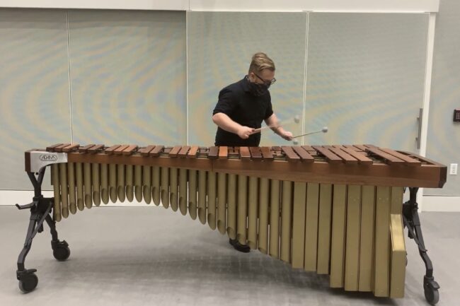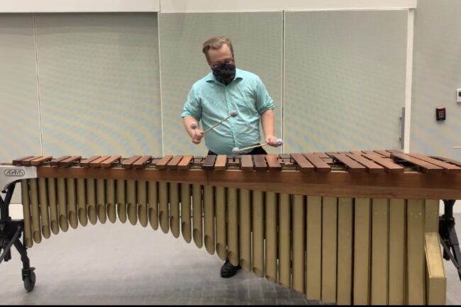 "Mercury Silver" by Marc Mellits "Mourning Dove Sonnet" by Christpher Deane Delecleuse 9 Hochrainer 50 "Reflections On the Nature of Water" by Jacob Druckman "Glass Waves" by Ryan Learned "Sunshine On My Shoulders" arr. Ryan Learned "A Light at the End" by Chad Floyd "Time for Marimba" by Minoru Miki "Saeta" by Elliot Carter "Suite No. 1 in G Major" by J.S. Bach "Spur" by Ivan Trevino "Moving Still" by CJ Menge "Asanga" by Kevin Volans